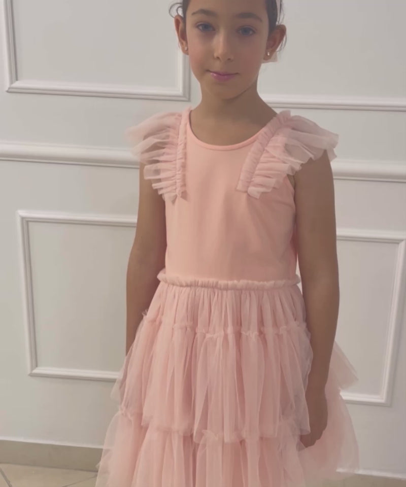 שמלת ביאטריס עם חצאית טול נפוחה בצבע ורוד אפרסק