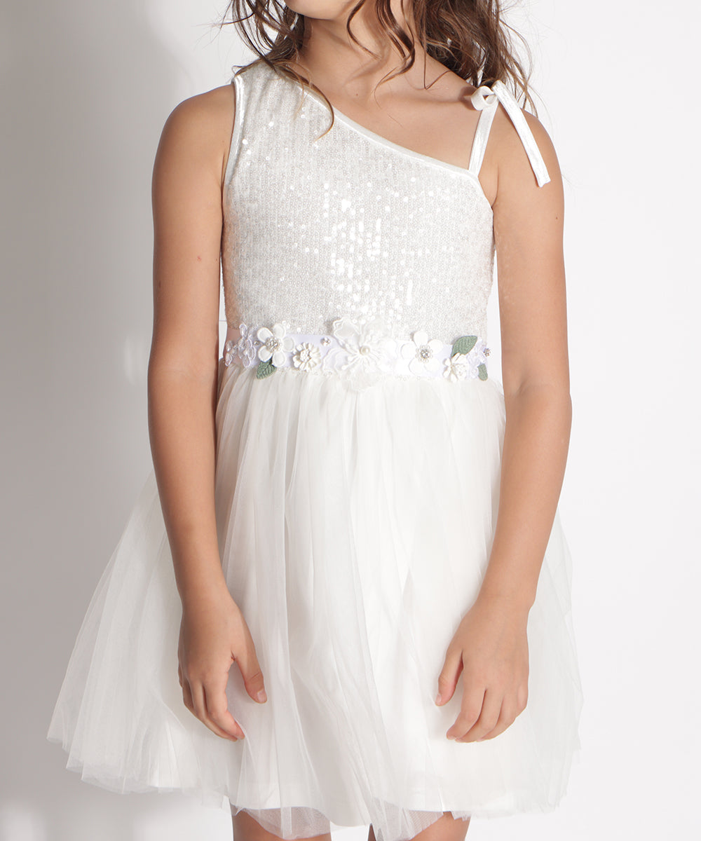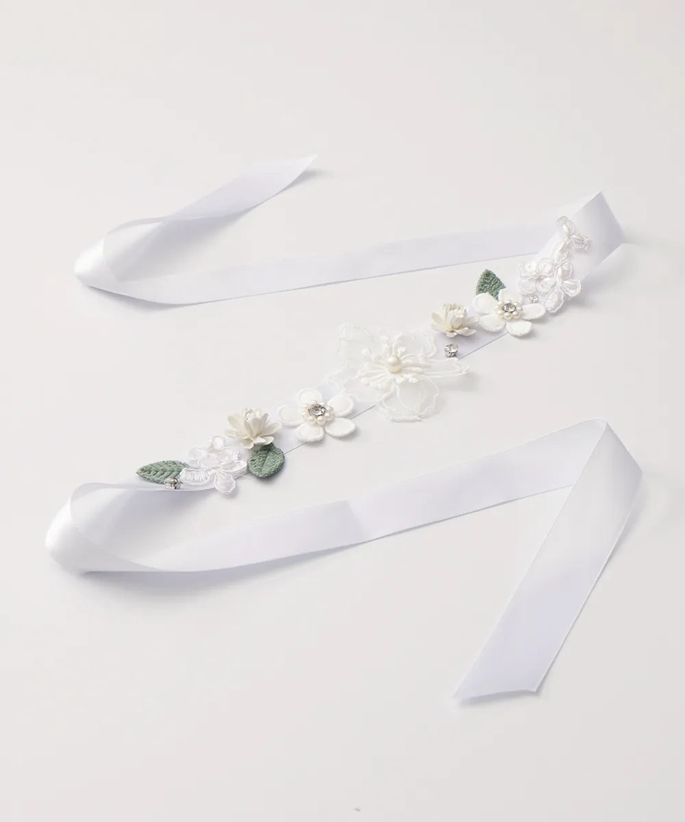 חגרות סטן מעוטרת פרחי בד בלבן
