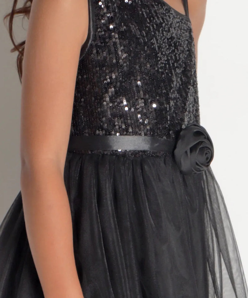 שמלה לילדה פייטים וטול בשחור