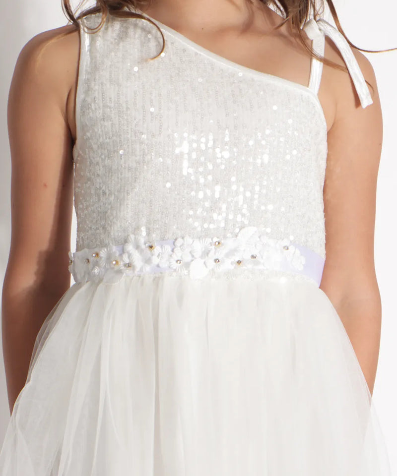 אוברול פייטים לילדה כתף אחת צבע שמנת