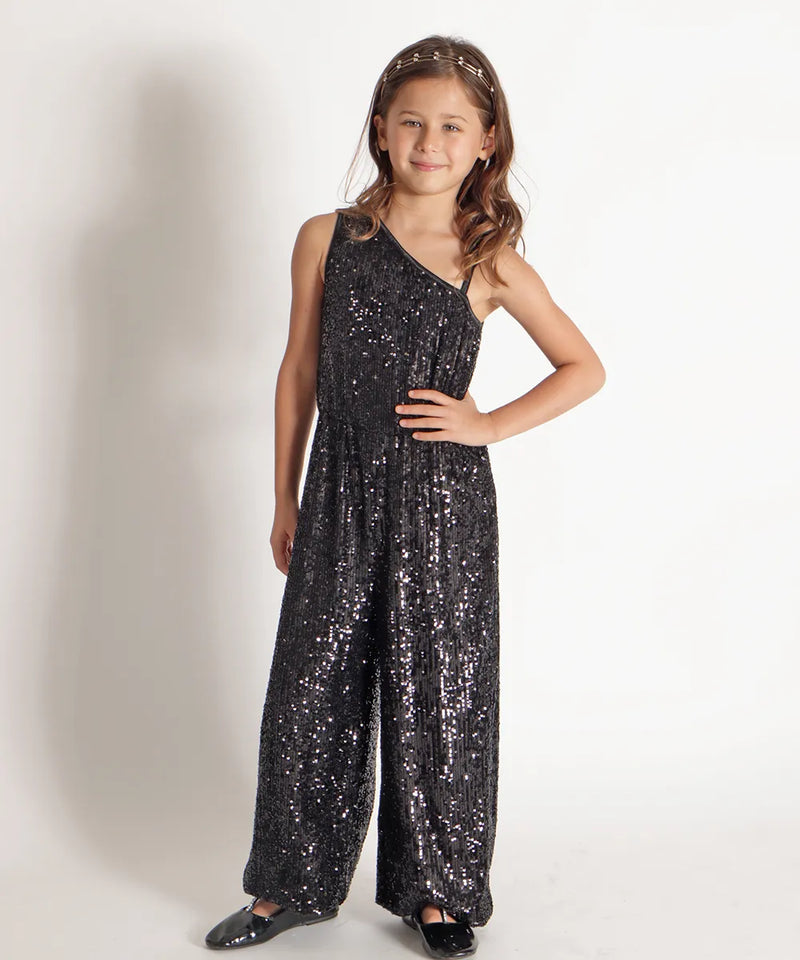 אוברול פייטים לילדה כתף אחת צבע שחור